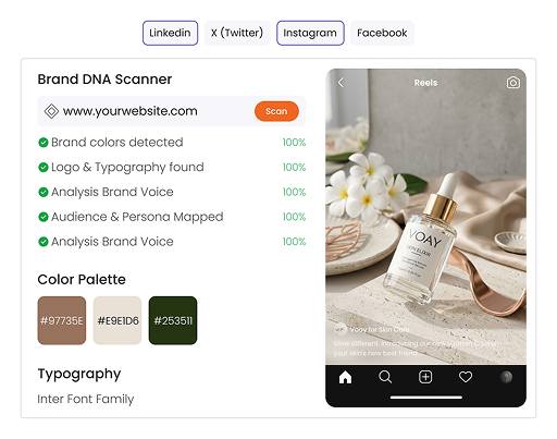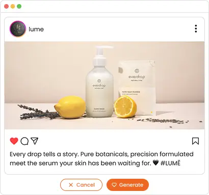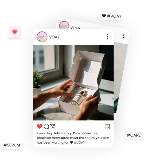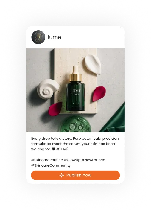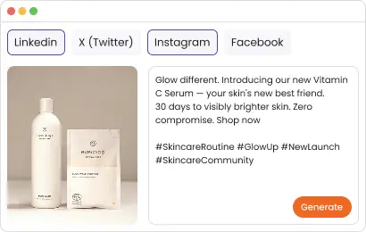 Generate product ads, captions, and social posts from your store URL — ready to publish on every platform in seconds.