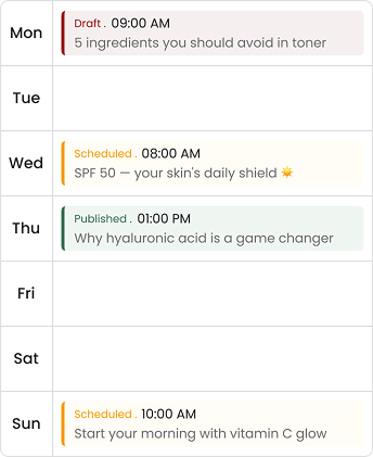 No copy pasting. No switching tools. Just create once and go live everywhere.